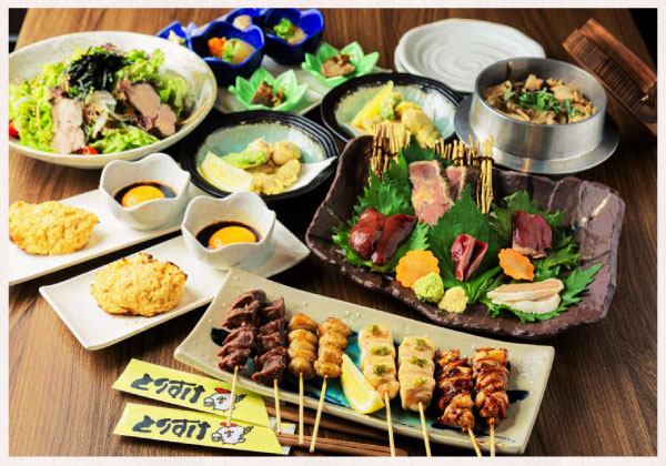 こだわりの串焼きをはじめとした鳥料理の数々や居酒屋メニューを愉しめる